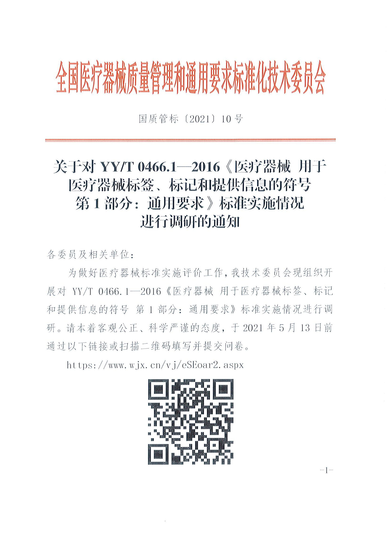 关于对YY/T 0466.1—2016标准实施情况 进行调研的通知