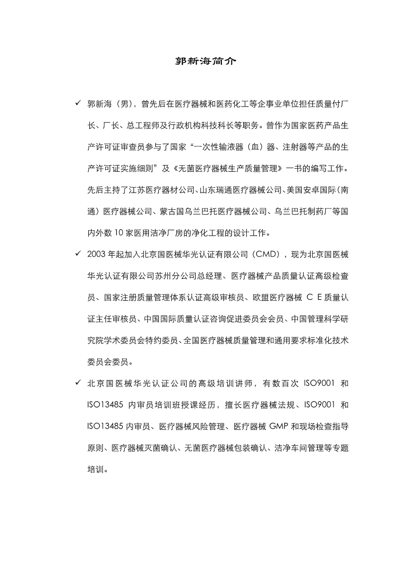新版医疗器械质量体系内审员培训通知