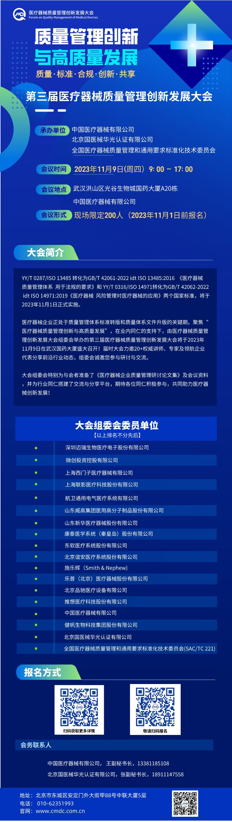 诚挚邀请 | 第三届医疗器械质量管理创新发展大会