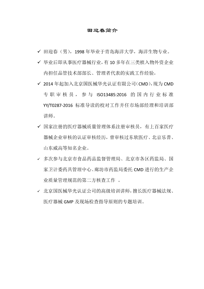 新版医疗器械质量体系内审员培训通知