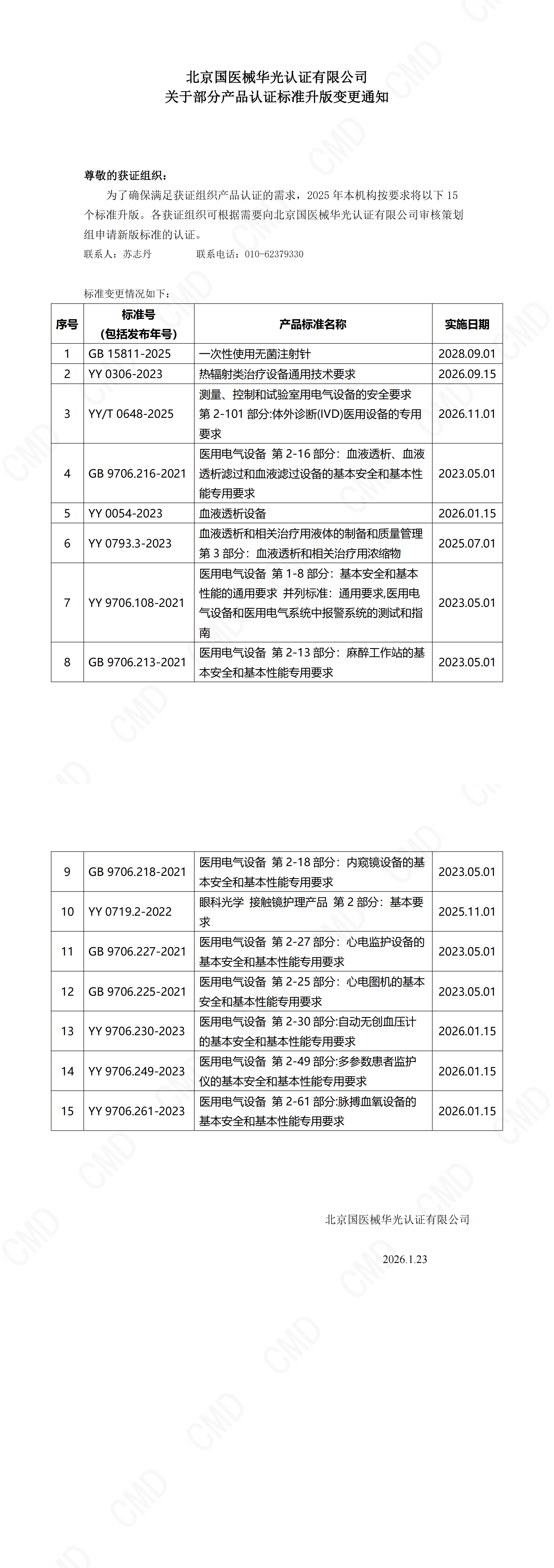 北京国医械华光认证有限公司关于部分产品认证标准升版变更通知