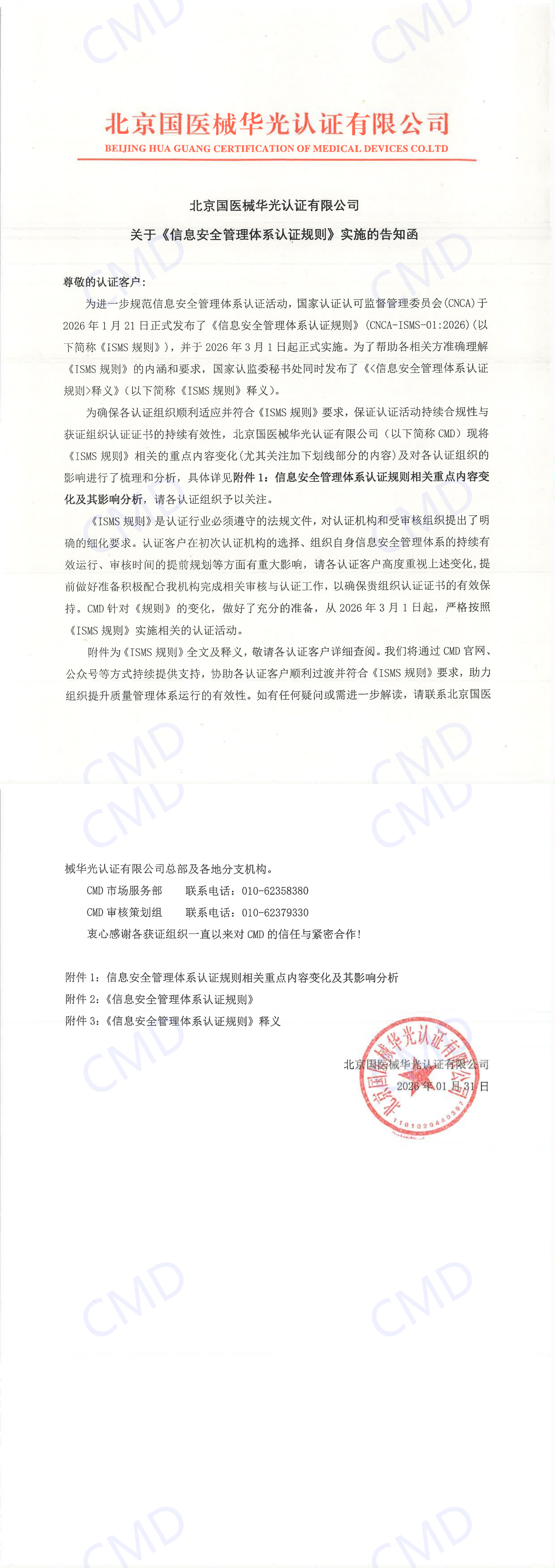 CMD关于《信息安全管理体系认证规则》实施的告知函