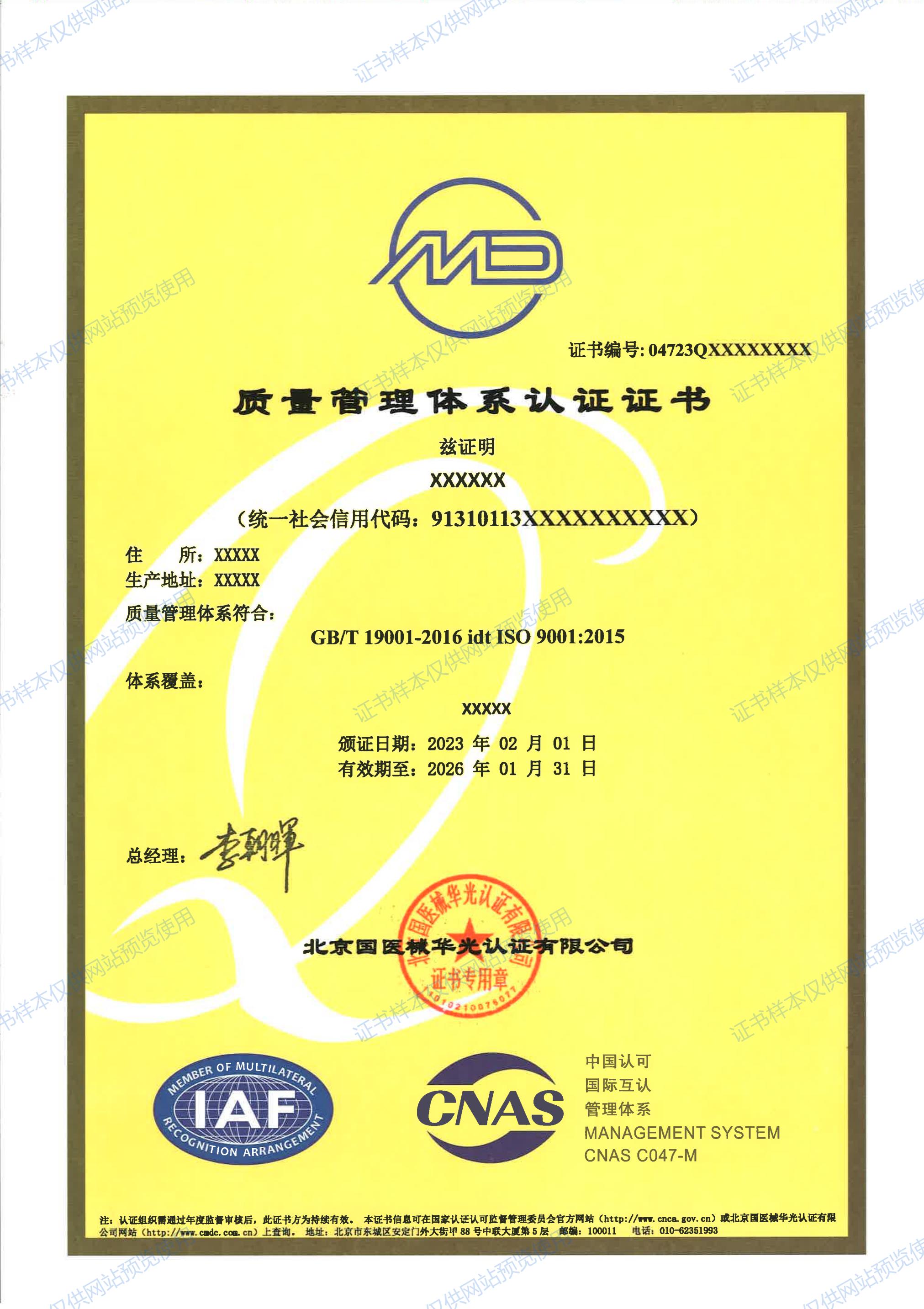 ISO 9001:2015 中文证书