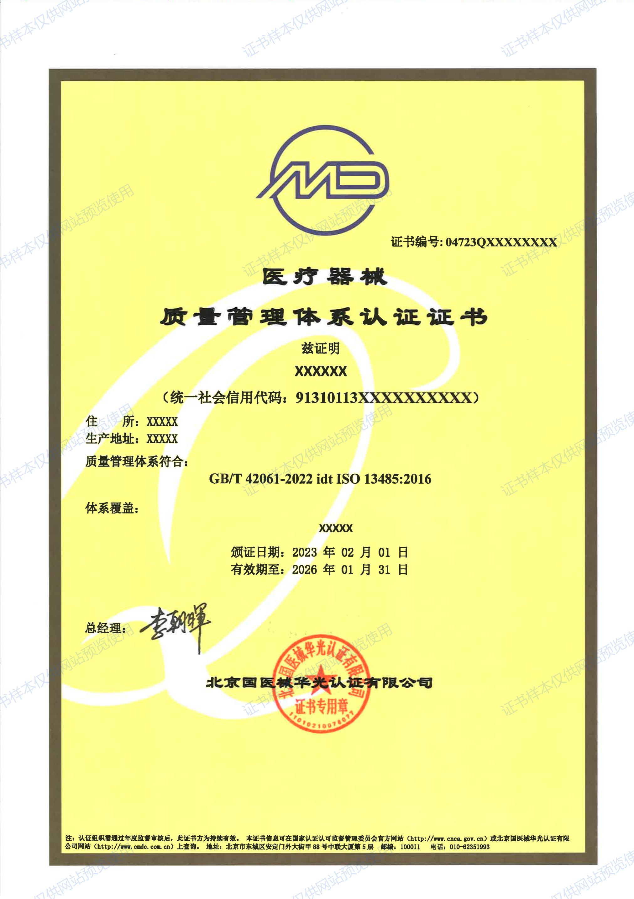 ISO13485:2016 中文证书