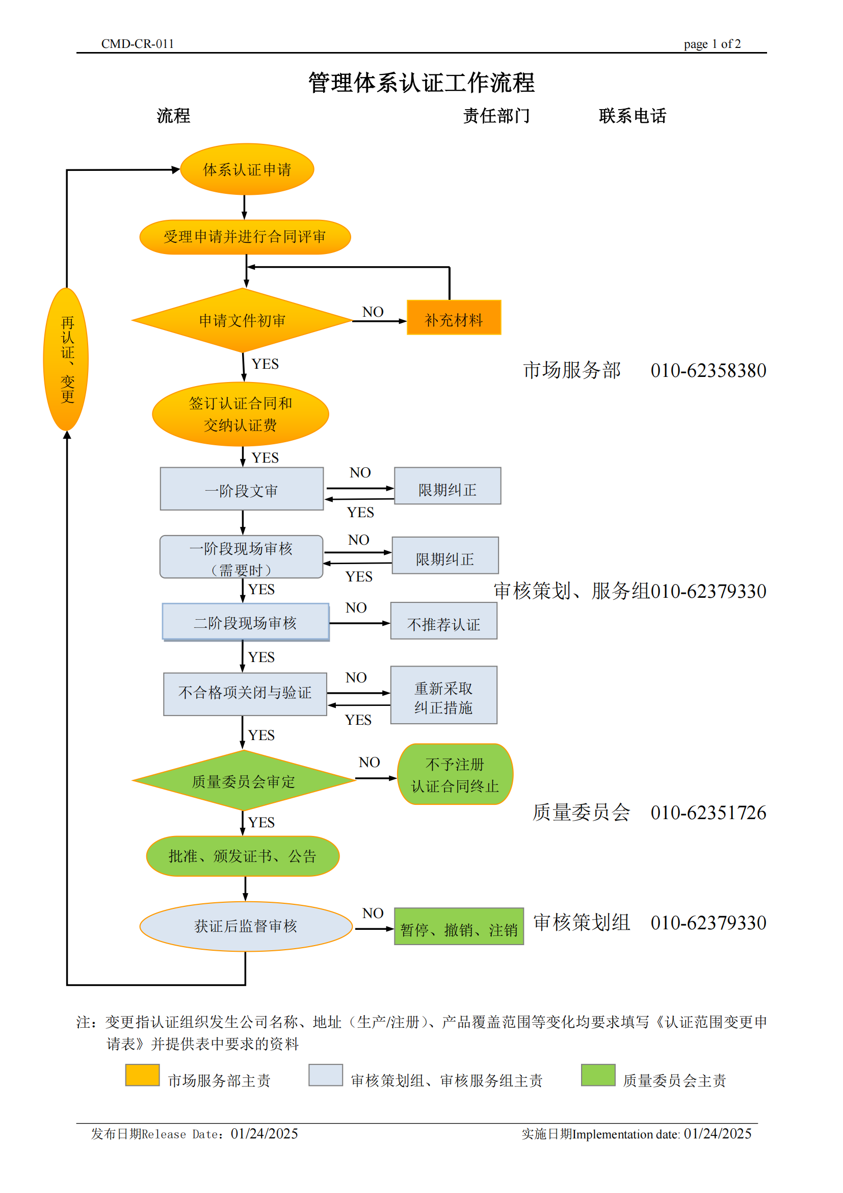 管理体系认证的授予、保持、扩大、更新、缩小、暂停和撤销/注销管理 |